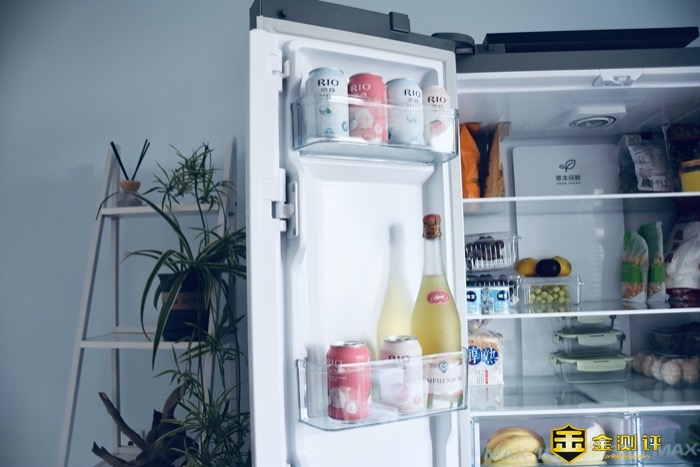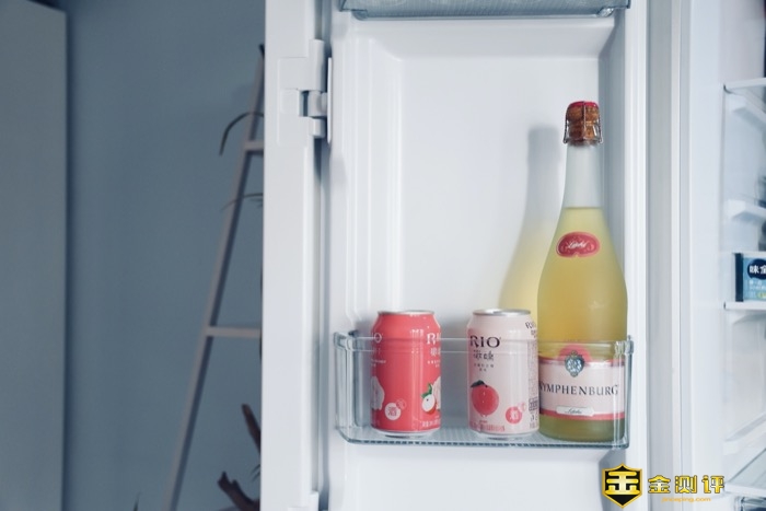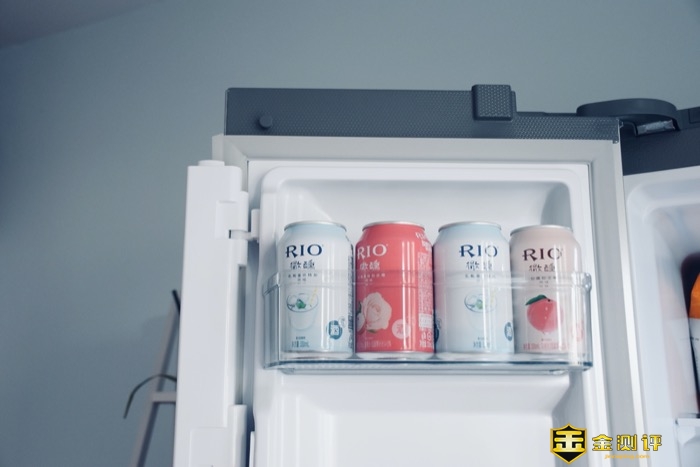 云小鲜系列云米互动大屏451L冰箱冷藏室对应的冰箱门内面,也设计有四个不可调节高度的存储区,个人习惯喜欢把酒水、酱汁之类的瓶装东西放在这个存储区,上层放高度矮的,下层放较高的东西,由于开关门会有惯性导致物品滑动,这四个区与物品接触面都做了处理,增大了接触面的摩擦力,体验效果还是不错的,如果给其中一个区加入放鸡蛋的架子,我感觉效果会更好。