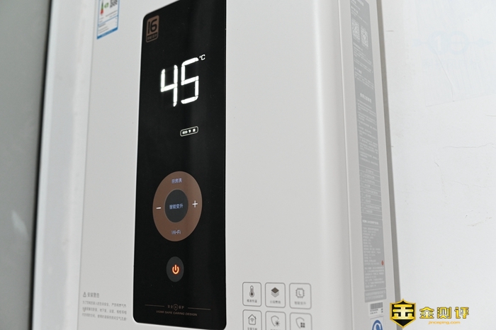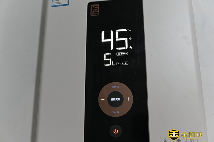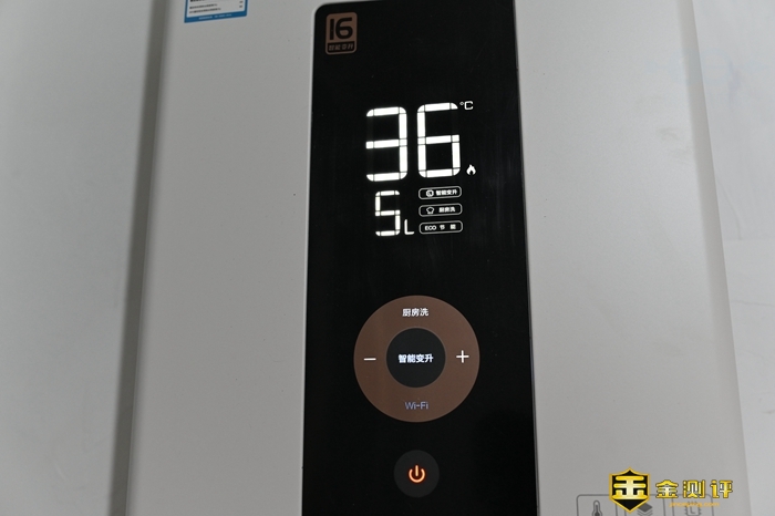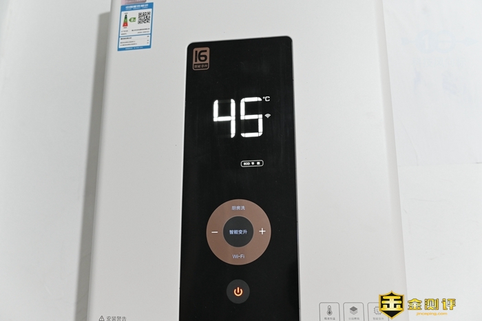 实际使用当中,这款热水器最令人满意的还是其清楚直观的显示屏,和同类产品相比,这个显示屏的显示效果非常明显,远远就可以看到当前的温度,而且很多日常常用的功能,比如厨房洗、智能变升、WiFi状态等,都可以很清楚的显示出来。这样的设计事实上对眼神不好的中老年人非常实用,配合同样清晰的按键,老年人平时也可以轻松使用。