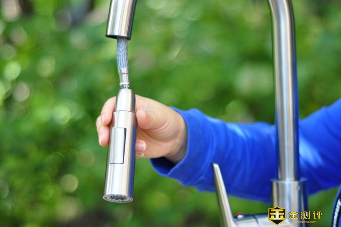 水头抽拉管外部拥有环保不锈钢编织丝,非常顺滑,最大抽拉长度达40cm,使用的时候,不论是清洁餐具,还是清理水槽,几乎全覆盖,并且在水管和花洒的连接处,同样使用了不锈钢的结构,阻尼适中,操作方便。