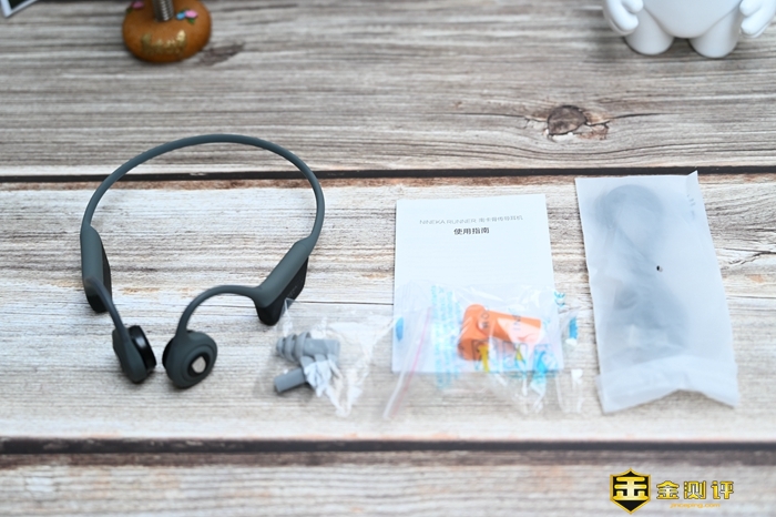 打开包装后可以看到,耳机内部的装饰比较有生活气息,很适合外出跑步、远足时使用,另外耳机本身的设计也显得很简约,同时也提供了一些必要的配件,主要是两套隔音耳塞,以及一根充电线还有说明书。需要注意的是,这款耳机用的是Micro USB充电接口。