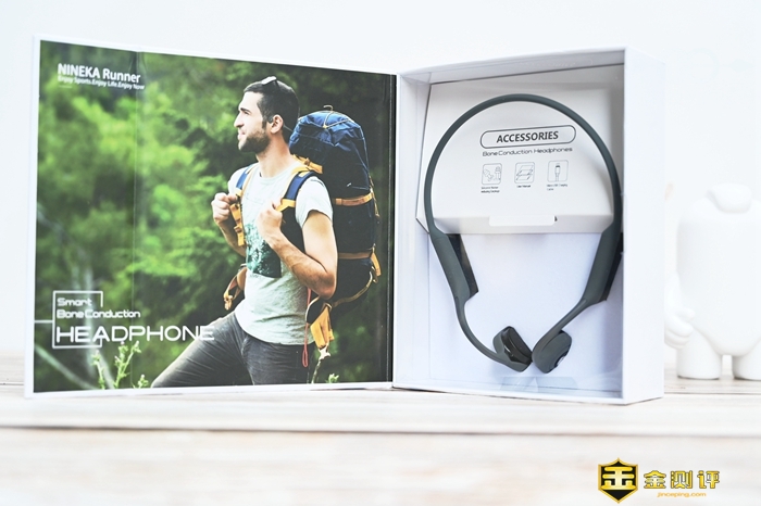 这款叫做Runner的骨传导耳机,本身也比较倾向于户外跑步等运动活动中的使用。耳机的包装比较简约,并没有对耳机进行过多渲染, 只是在包装盒背面介绍了这款耳机的一些功能特性,此外这款耳机的配色也是比较低调的深空灰色。