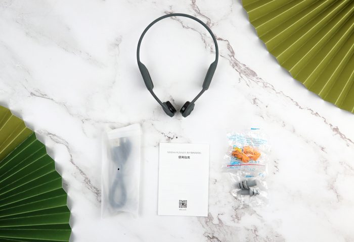 装箱清单包括有南卡骨传导耳机Runner*1、充电线* 1、说明书(内 含保修卡)*1以及两降噪耳塞*2对。