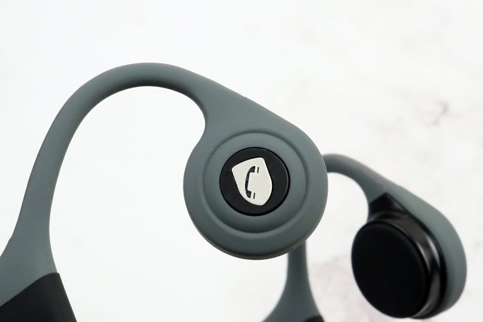 相对应的内侧则是圆形的实体按键设计来,一端的电话标示图案为多功能按键,有了它能够实现开关机键、通话控制、蓝牙连接。
