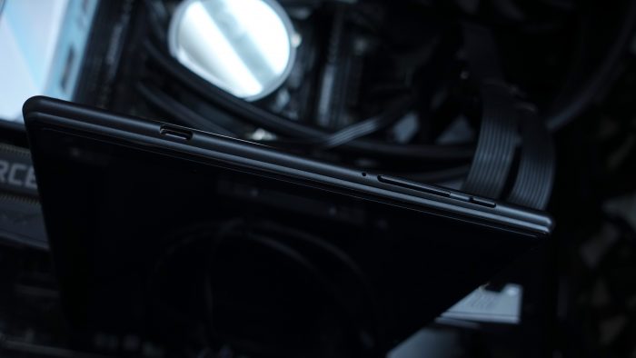 台电M40的左侧依次为Type-C充电接口、复位按钮、音量“+”“-”键、电源开关键。