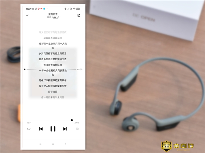 再听首金沙的《画中仙》,声音解析力较好,高音通透嘹亮,细节表现丰富,不同背景乐器声有清晰体现,因为骨传导发声,声音靠前并不贴耳,所以人声密度有很好保持,柔和自然。