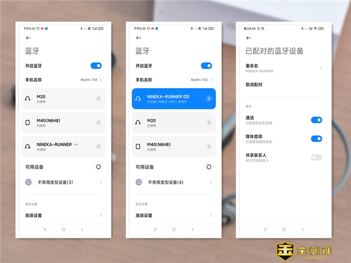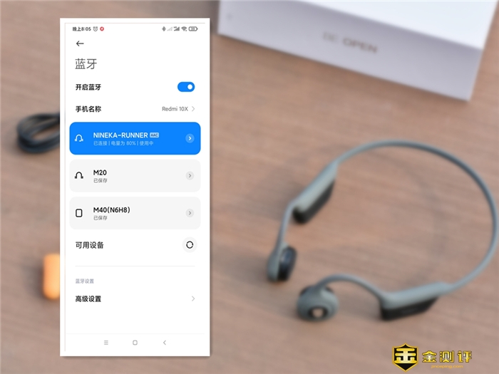 实际连接体验中给我最直接的感受即是简单快速:首先长按右耳上的功能键3秒即可进入配对模式,头梁内侧LED指示灯呈红蓝交替闪烁,同时耳机也会传出配对语音提示,接着开启手机蓝牙,搜索选择南卡骨传导耳机设备,耳机就会在几秒内连接成功,整个连接过程就很行云流水,一点即连,用时5秒不到,且连接成功后会显示耳机状态和电量,让你更直观了解耳机使用情况,以便及时充电。