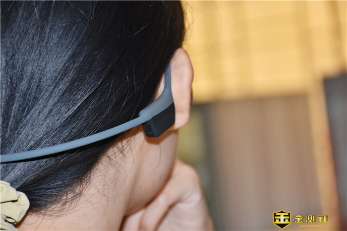 此外,还令人比较满意的是,骨传感耳机声波是由头骨传递到耳蜗,不需要经过耳道,所以佩戴时耳机发声单元是贴在脸颊骨上,不会塞入耳朵,一方面减少传统耳机佩戴时的压迫感,再者对听力也起到一定保护作用。