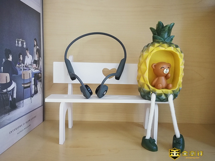 而盒中就是一层透明层,主角像沉睡千年的公主文静地躺在中间,拿出骨传导耳机,上方掀开就是配件仓了,配有充电线、说明书和一对耳塞,非常良心的还额外配了一对降噪耳塞,可以根据个人的习惯去选择,如果喜欢立体音效,耳塞是最好的选择。