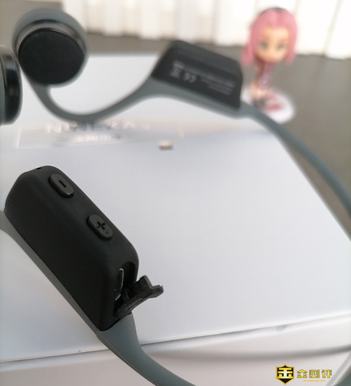 两端最前沿就是骨传导式扬声器,同样采用的是轻柔材质,内侧平滑,使紧贴小耳前也不会有紧迫感,左右两边的扬声器外侧分别是“▶||”与“ ✆ ”,这也是与Runner CC最大的不同了,Runner 设计上键更多,分工上更加明确。
