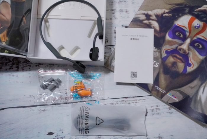 打开耳机上部的纸盒子,可以看到随机配套的部件有两套耳塞、充电线、说明书。