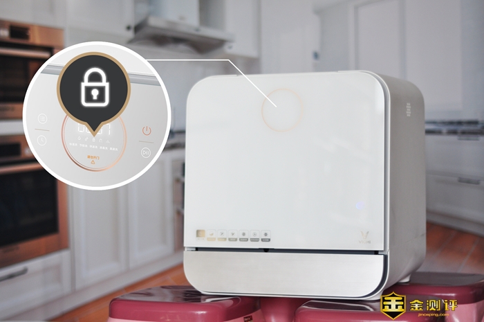 除APP控制外,云米台面智能洗碗机同样支持本地触控使用,功能选择、定时工作、启停、开关四大金刚键格外显眼,选择面板上的工作模式键可以切换工作模式,当前模式会显示的屏幕上,并且屏幕主区域显示的是清洗倒计时,方便在厨房做饭时随手使用。为防止熊孩子不小心在机器运行时乱按,云米台面洗碗机还支持儿童锁,完全不用担心孩子误操作。