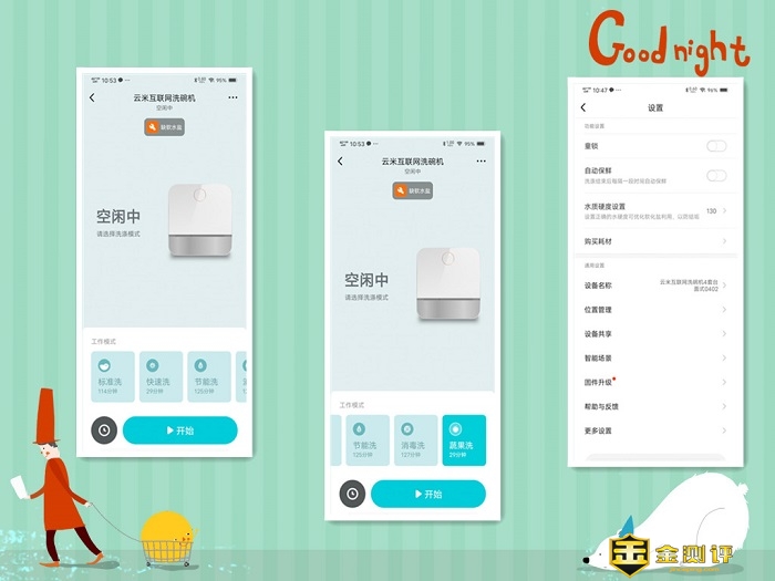 作为云米的品牌,那么支持WiFi和app控制是必须的,通过米家app,可以添加设备,在app里,可以进行选择各种洗碗方式,预约,开启和关闭自动保鲜等。