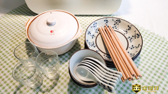 将锅和碗、深盘、杯子放到下面。