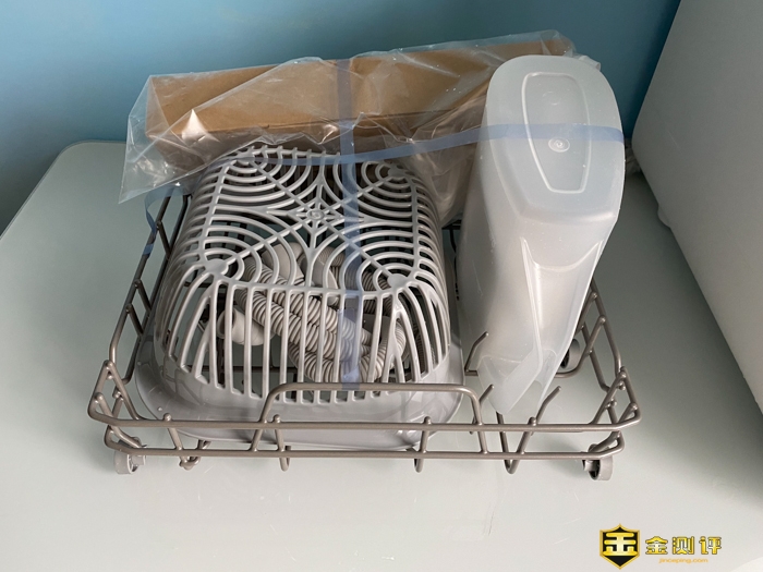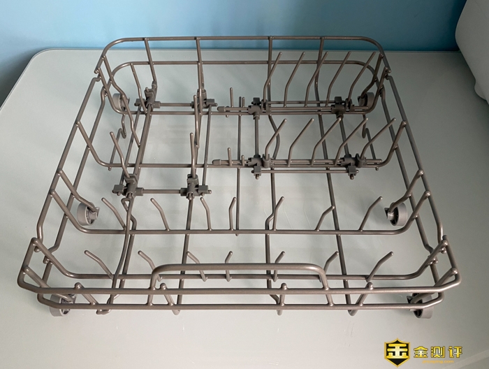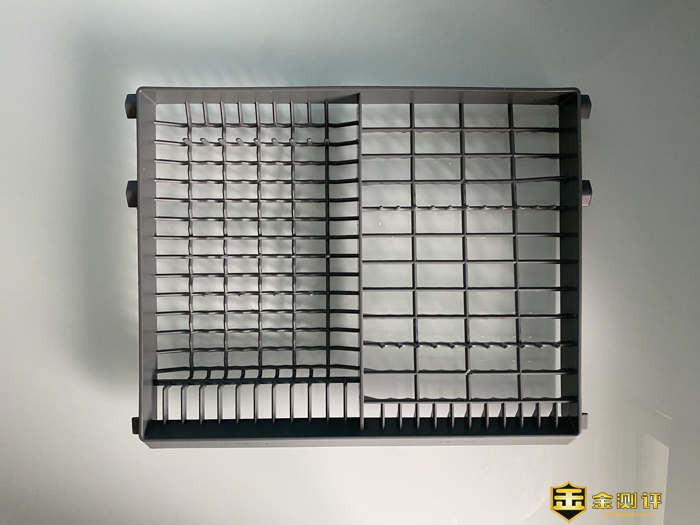 配件就这么多了,配件还是很齐全的。我们来看看,这个洗碗篮,下面的洗碗篮是方形的。里面有很多铁丝用于餐具的分割。