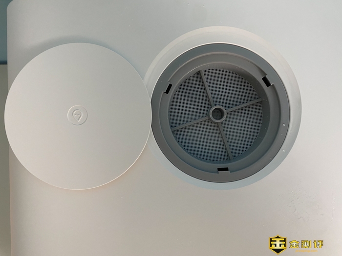 顶部有个盖子,撕开固定胶条后,打开盖子,里面是有滤网,这里是人工手动注水的地方,下面就是水箱。云米免安装台面洗碗机Sugar A1是带水箱的,支持水箱储水。这对于没有上水条件的家庭很重要,很实用。