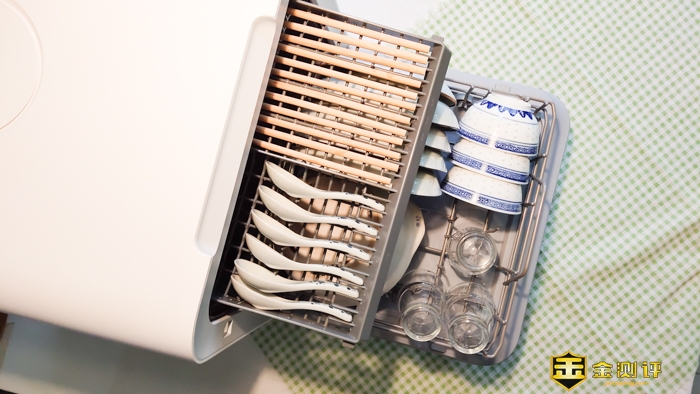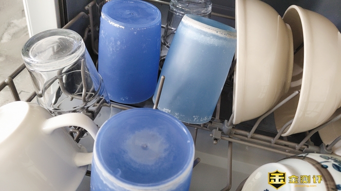 洗完的餐具都很干燥,如同之前标准洗一样,而漱口杯,由于没有注意到倾斜,所以这个漱口杯顶部(底部),还有残留的水。