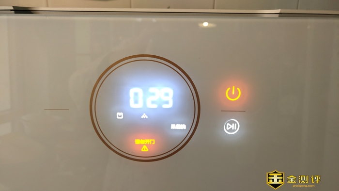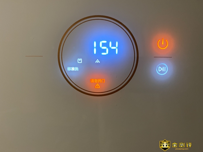 按动开始键启动后,在门上的显示里会有橙色的字提醒不可开门,这个上面的时间是1小时54分钟,中间的 “:” 号因为在闪烁,没有拍到。