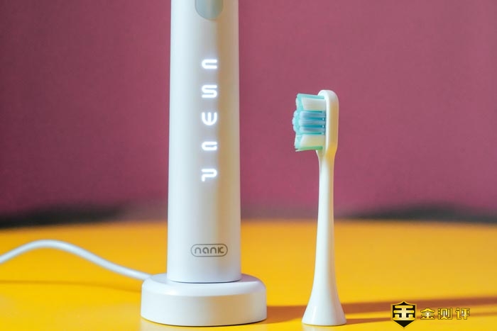 南卡 Shiny电动牙刷随机附送了两个刷头,都是采用的美国进口的杜邦抗菌刷毛,末端有进行磨圆处理,防止刷毛损伤牙齿。同时刷头双弧面设计,舒适的软毛材料,使得整个刷头都可以很好的贴近牙齿牙龈,舒适且还有按摩作用。