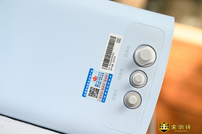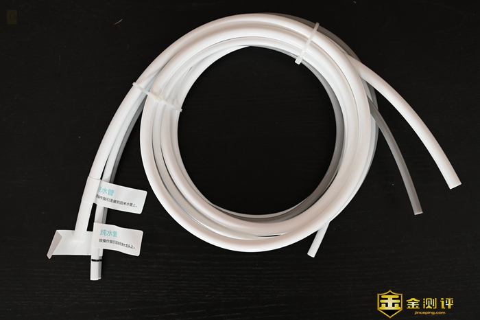 机器的顶部有三个接口,包括自来水进水口,以及纯水和废水的出口,接口上面做了非常清楚的标注,并且也配备了对应的水管,水管上面也标注的很清楚,所以安装和维护都是很方便的,通过卡扣就可以紧密固定,不需要用到螺丝或是管件。