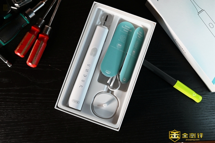 电动牙刷通常都会采用可换刷头的设计,南卡Shiny也不例外,在包装里面提供了两个密封的刷头,此外还有一个无线充电器,以及必要的说明书。因为牙刷通常是在潮湿环境中使用的,所以防水能力非常关键,这款电动牙刷就是IPX7的防水等级,属于比较高的,充电是通过无线感应充电完成,用起来比较方便。