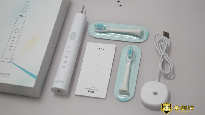 东西还是比较简单的,一个主机,两枚刷头,一个无线充电底座,以及一份产品使用说明书。按照每3个月更换一次的频率,至少半年以内是没有额外的开支了。