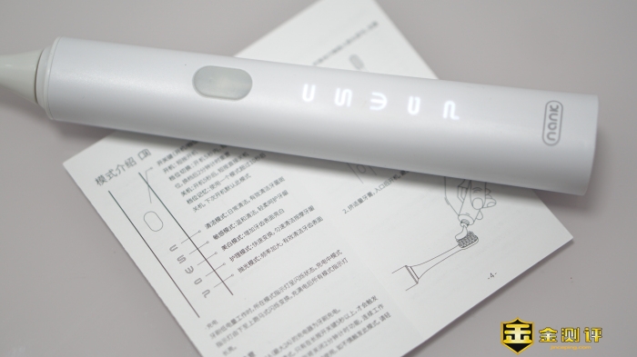南卡Shiny 电动牙刷提供了5档震动模式,分别是清洁、敏感、美白、护理、抛光,对于初次接触电动牙刷的我来说,还是选择比较轻柔一点的敏感模式,轻按开关开机之后继续点按则可以进行模式切换。