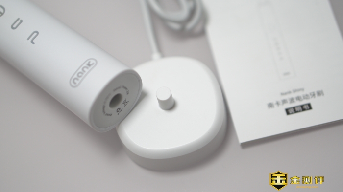 内盒,每个部件都卡在了吸塑托盘中,两枚刷头则独立密封包装,对于牙刷这种比较私人化的产品,确保交到消费者手上时保持一个全新未开启的状态是很有必要的。因为是南卡的第一款电动牙刷,Shiny目前只有北极白这一种颜色,期待将来能有更多配色,满足更多人的个性化需求。