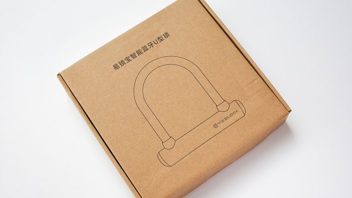 首先是智能蓝牙U型锁,这也是我个人最中意的产品。包装方面没有太多的亮点,采用传统的牛皮纸包装盒,正面印有产品名称和锁子的线条轮廓图。