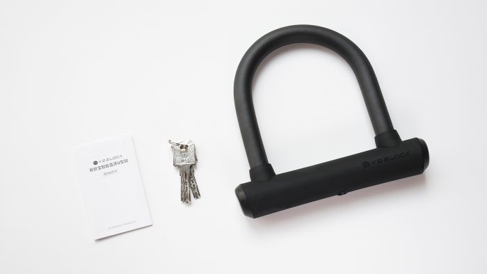 易锁宝智能蓝牙U型锁有两种规格,两者的区别在于锁梁部分的长度,我选的是小一号的,主要用来锁电动车比较方便,大一号的可以用来锁公司或者是商场的门。