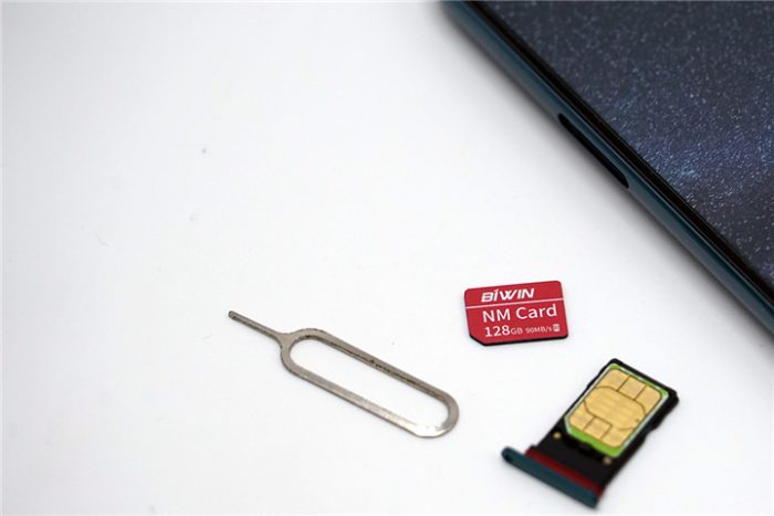 佰维NM存储卡与传统Micro SD(TF)存储卡相比,体积减小约45%,尺寸规格和Nano SIM卡完全相同,安装也非常简单,插入手机副卡槽就能用。