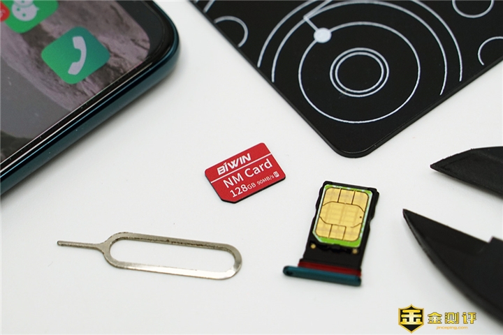 128G的佰维NM存储卡主体设计十分简约,厂商还贴心地赠送了取卡针。