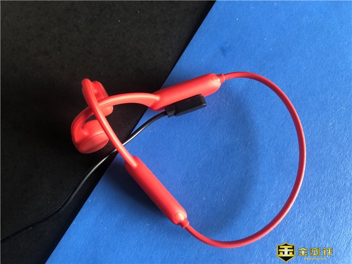 我拿到的这款为红色款,同时这款产品还设置了黑色版本可供选择,NANK南卡骨传导Runner Pro骨传导运动蓝牙耳机基于人体工程学设计,采用挂耳外放设计。左边耳机发声部件后部有这款耳机产品的品牌标示' NANK',后部应该是内置电池仓,包括后部的骨架都采用全硅胶包裹全封闭式设计,使用中也无需担心运动出汗导致的液体侵蚀,非常nice。手感极好,这也是佩戴舒适的保证,整体设计非常低调时尚。