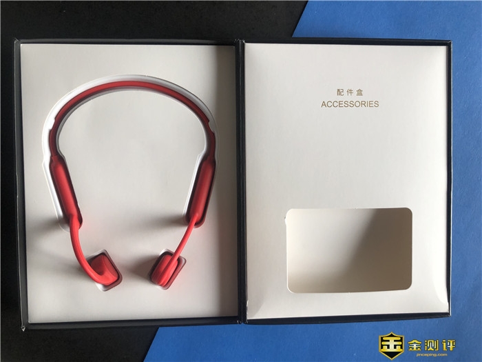 打开封套和包装盒,包装在展示产品的同时还起到加强保护作用,可看到NANK南卡骨传导Runner Pro骨传导运动蓝牙耳机完美的保护放置在产品包装内,包装右边是配件盒。