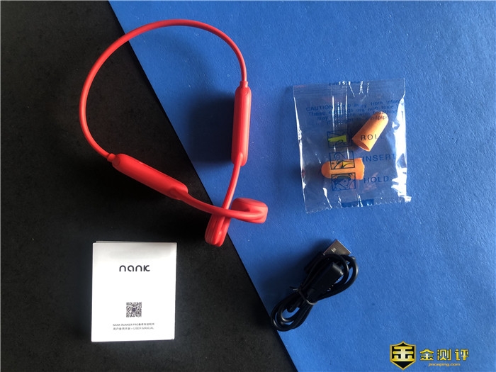 包装内包括NANK南卡骨传导Runner Pro骨传导运动蓝牙耳机、USB接口触点充电数据线和产品使用说明书,对了还有一副隔音耳塞。