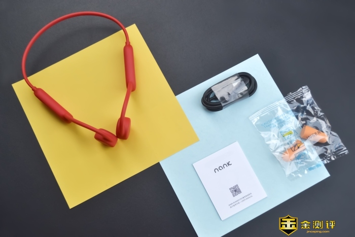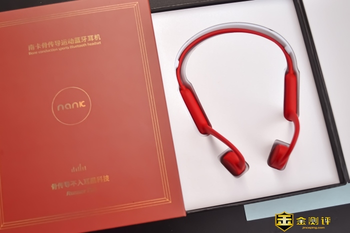 打开包装第一眼就看到我们的主角NANK南卡骨传导运动蓝牙耳机Runner Pro,大红的配色相当惹眼。