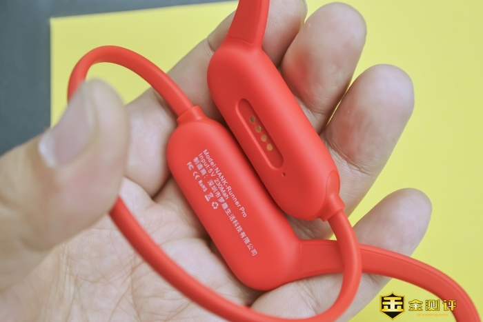 NANK南卡骨传导运动蓝牙耳机Runner Pro的工作指示灯位置。充电为红色,使用为蓝色。