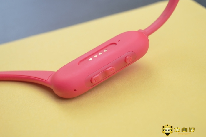 耳机的控制开关部分,少且够用,足以在大多数的场景下使用。长按开机键开机,单击播放/暂停音乐,双击激活内置MP3播放功能,接听/挂断电话。加减号负责音量控制与上下曲切换。