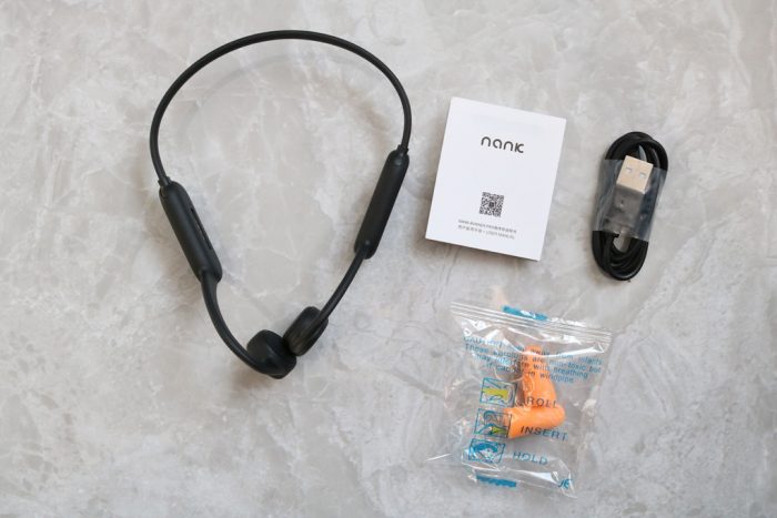 此款耳机的配件相比于入耳式耳机的配件来说,相对简单,不需要多款耳帽来进行更换佩戴,骨传导耳机就是这么简单方便,只有耳机、充电线、说明书、耳塞。
