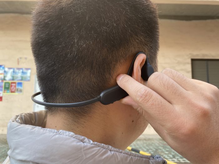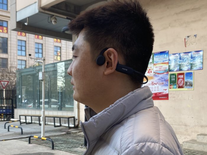 通过外观的观察,南卡Runner Pro骨传导耳机传声部分与入耳式耳机不同,因为它的传播介质不一样,骨传导耳机属于通过耳朵周边的颅骨将声音信号直接传给听小骨,因此它能在一定程度上避免声音在空气传播过程中引入杂音,从而有效提升音质。