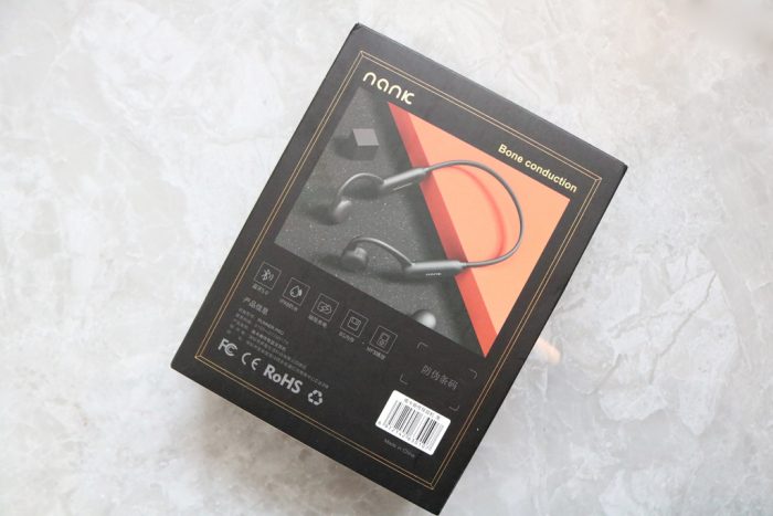 南卡Runner Pro骨传导耳机背面为产品样图以及基本信息等内容。当然此款耳机支持蓝牙5.0、IPX8级防水、磁吸充电、8G内存、支持MP3播放模式。