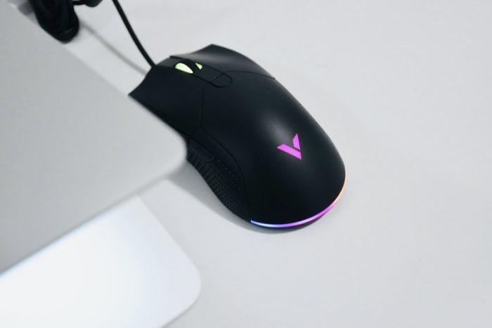 雷柏V30幻彩RGB游戏鼠标正面还是采用经典的设计方式,上半部分分成左键、右键、夹着滚轮中键,左右主键分离式设计,让左右键受力更加均匀。鼠标中央低调的DPI键、前进后退按键设计在左侧,背部设计有产品logo,底部设计有灯带。