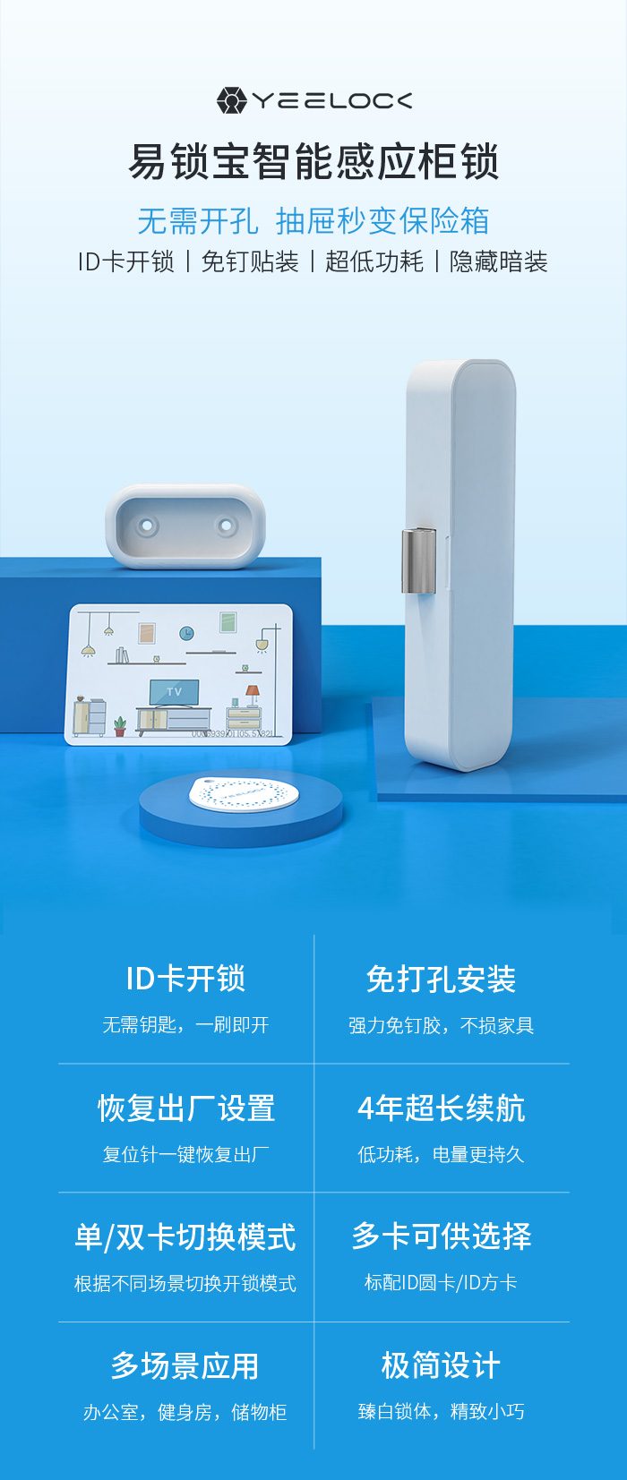 易锁宝智能感应柜锁/蓝牙U型锁/指纹挂锁套装 5套 (主要体验易锁宝智能感应柜锁,蓝牙U型锁轻体验,放到一篇文章[指纹挂锁无需输出])