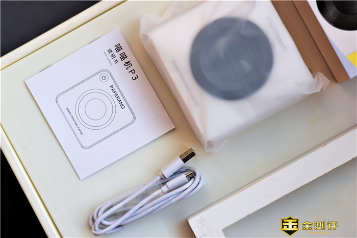 上下打开包装,我们可以直接看到使用说明书,说明书上有关于产品较为详细的使用说明,建议大家详细阅读一下。将所有的配件拿出来,喵喵机P3的标配有:主机、说明书、数据线。P3主机被放置在一个塑料袋中,可以起到较好的防尘防水作用。