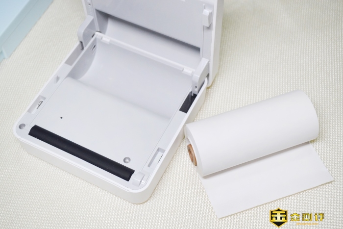 左侧是开盖标示,方便引导更换热敏纸。