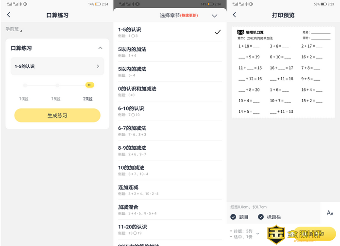 打开口算练习,这里会随机生成指定