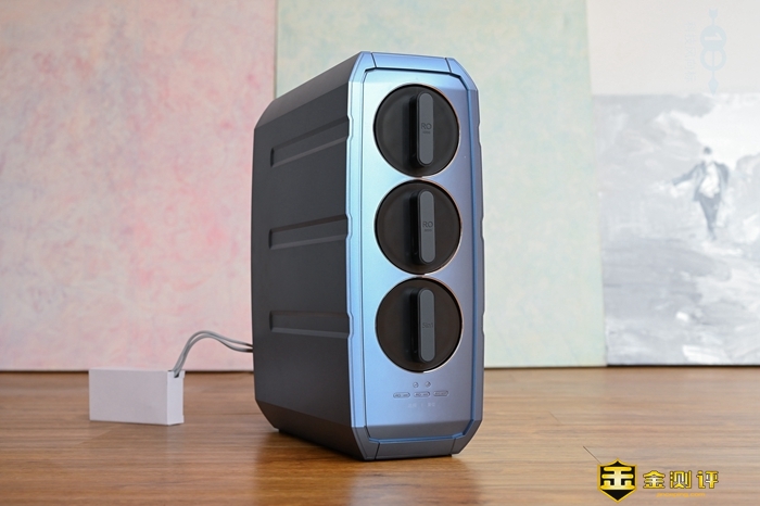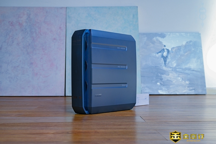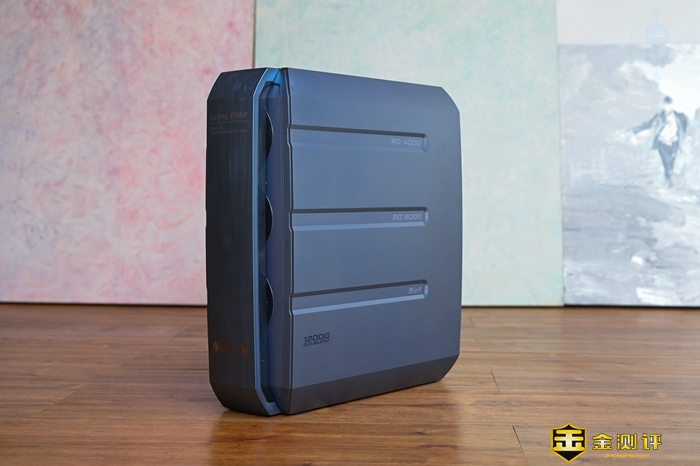 这款净水器的左右两侧,也是采用了简约风格的设计,并且在净水器右侧,还从上至下标注了400G、800G以及5in1,也就是对应的滤芯的位置。此外在细节设计上,这款净水器表面的拉丝工艺也显得很漂亮。