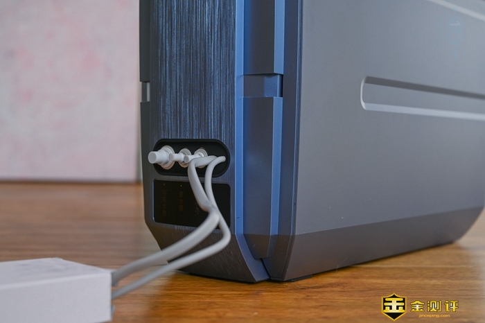 至于净水的进出水口,则是放在了背部的下方,并且有清晰的文字进行标注,安装的时候也很简单,通过配套的水管和卡子几秒钟就可以装好,而且把进出水口放在这个位置,也让把净水器放在台面上使用显得更加方便。