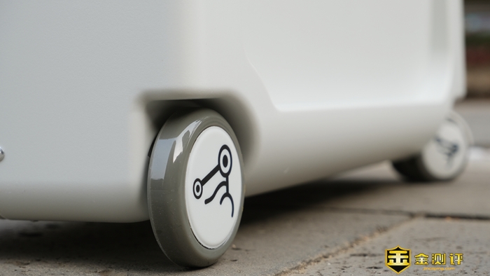 箱子底部配有4个ABS材质印有儿童车标识的轮子,其中后侧为固定轮,前侧为万向轮,这样的设计方案,可以为孩子提供更好的骑行体验,真是想往哪转就能往哪里转。