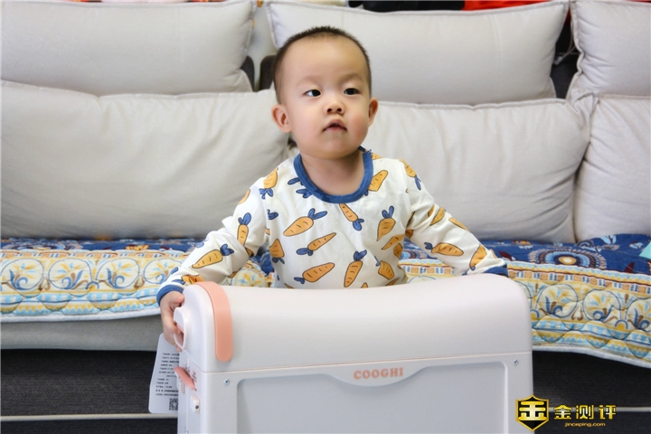 行李箱除了收纳用途外,实用之处是可以坐在箱体上休息,好玩之处就是可以当个滑轮车来用,要注意只能在平整路面上使用,不建议在有斜坡或者有坑的路面上玩,因为行李箱没有设置紧急刹车。还一个隐藏功能就是,行李箱顶部盖还可以调节高度,并且5挡高度调节,匹配不同的座椅高度。用来在外出等候车时,脚搭在箱盖上休息,试了一下,坐着垫脚确实舒服很多。