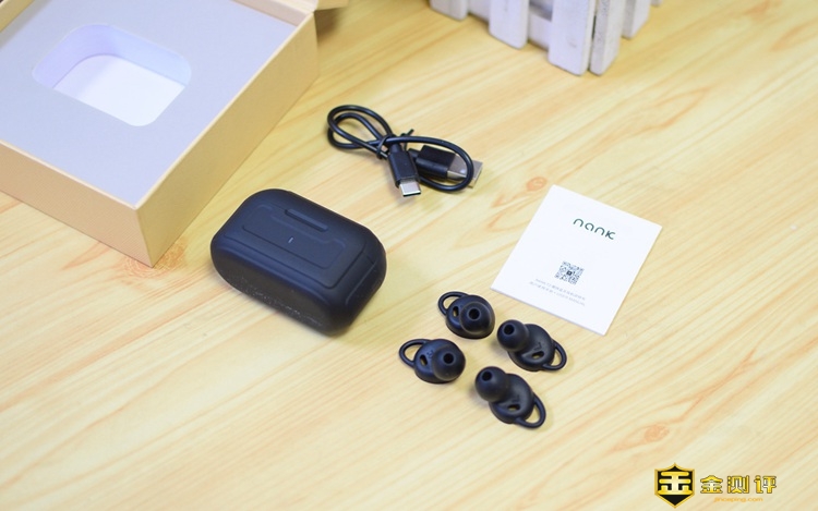 配件方面,简洁明了:一只充电仓,一根充电线(C口),一本说明书以及两付备用的耳塞套